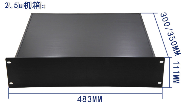 2.5U全鋁/鈑金機箱300mm深和350mm深兩個型號,價格分別為319元和379元,尺寸分別為111*483*300MM111*483*350MM